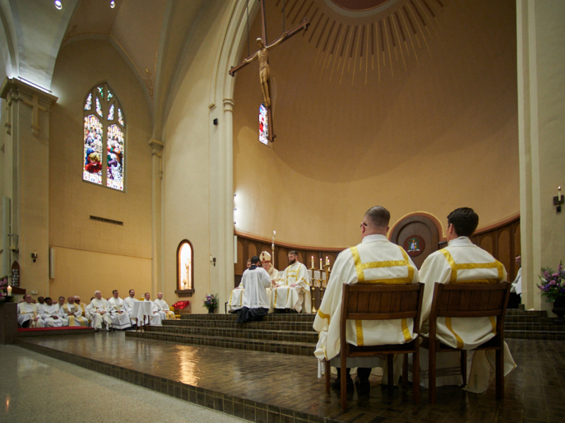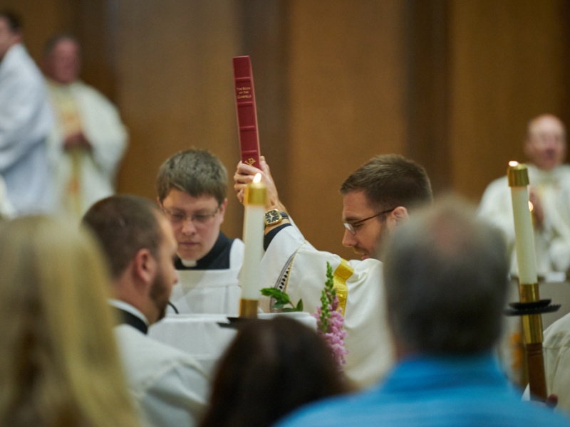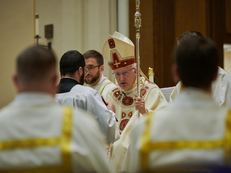 The sacred music was provided by a Diocesan Combined Choir and Schola under the guidance of Michael Garnett, Director of Music at Saint Mary Cathedral. The altar servers were drawn from the ranks of the Diocese of Lansing’s 28 seminarians.