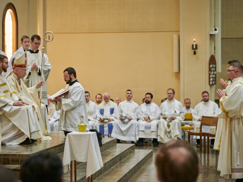 “My sons and brothers, Jesus is our model, as is always the case,” said Bishop Earl Boyea in his homily during the Ordination Mass at Saint Mary Cathedral in Lansing.