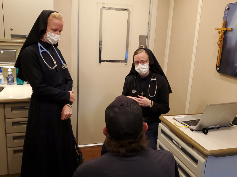 “For the Religious Sisters of Mercy of Alma, Michigan, after one year of postulancy, we enter the canonical novitiate, which is one year dedicated to building a strong foundation in our relationship with the Lord and learning more about becoming a consecrated religious through classes, prayer, meetings, and service. After the canonical novitiate which takes place at our Motherhouse in Alma, we are sent on our first missions to another one of our convents. I was sent to Knoxville in Tennessee to work with our mobile medical clinic, alongside Sister Mary Lisa who is a physician and the medical director of the clinic. The mobile clinic travels through the Smoky Mountains to various rural sites to care for people without insurance, and it has been a privilege to serve on this team for the past few weeks.”